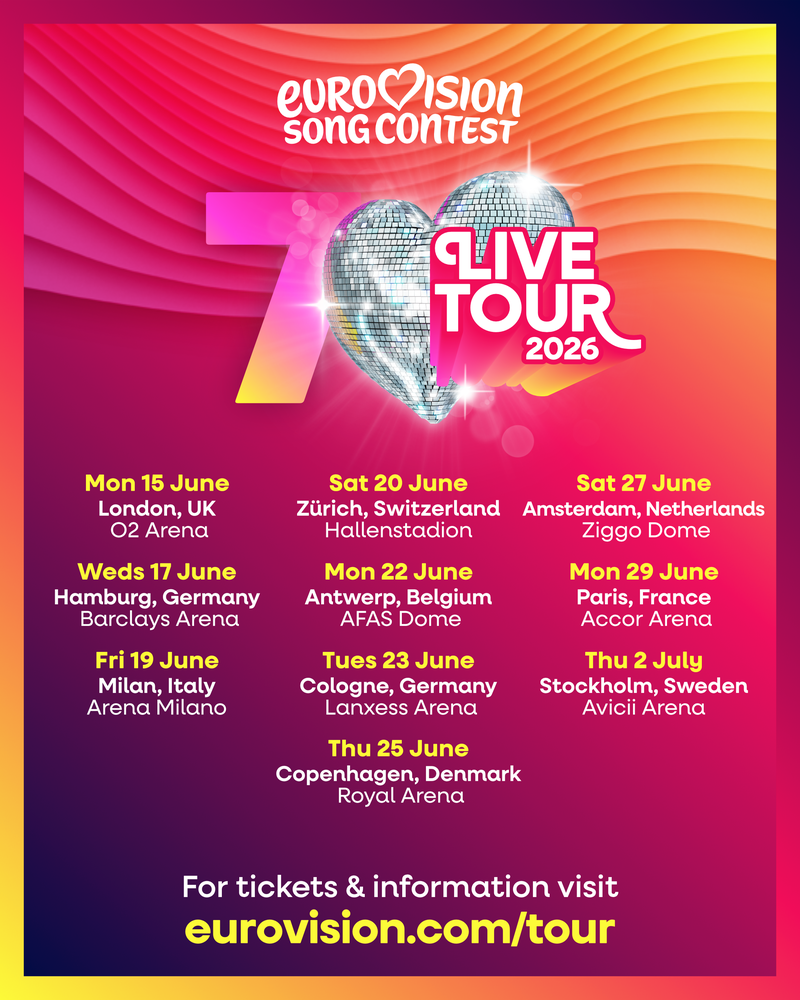 Gikk du glipp av billetter til årets Eurovision Song Contest? Da kan årets ESC-turne være ett lite plaster på såret. Eurovision Song Contest Live Tour besøker ti store europeiske byer fra 15. juni til 2. juli 2026.
